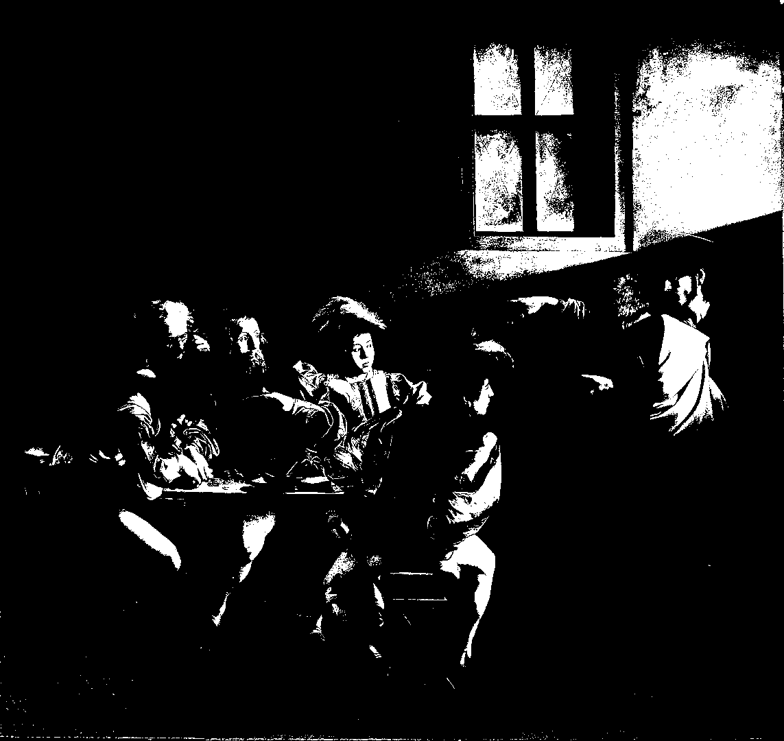 This is the effect I was looking for. There is a striking difference between the dark and light areas of the image while still preserving the detail of the standard grayscale operation. I hope Caravaggio would approve modifying his work in such a manner — at least for learning purposes.